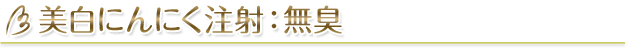 美白効果と疲労回復のダブル効果のにんにく注射です。無臭にんにくを使っていますから匂いはありません。